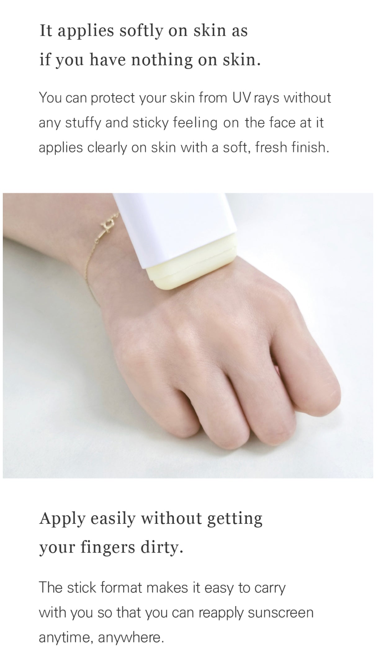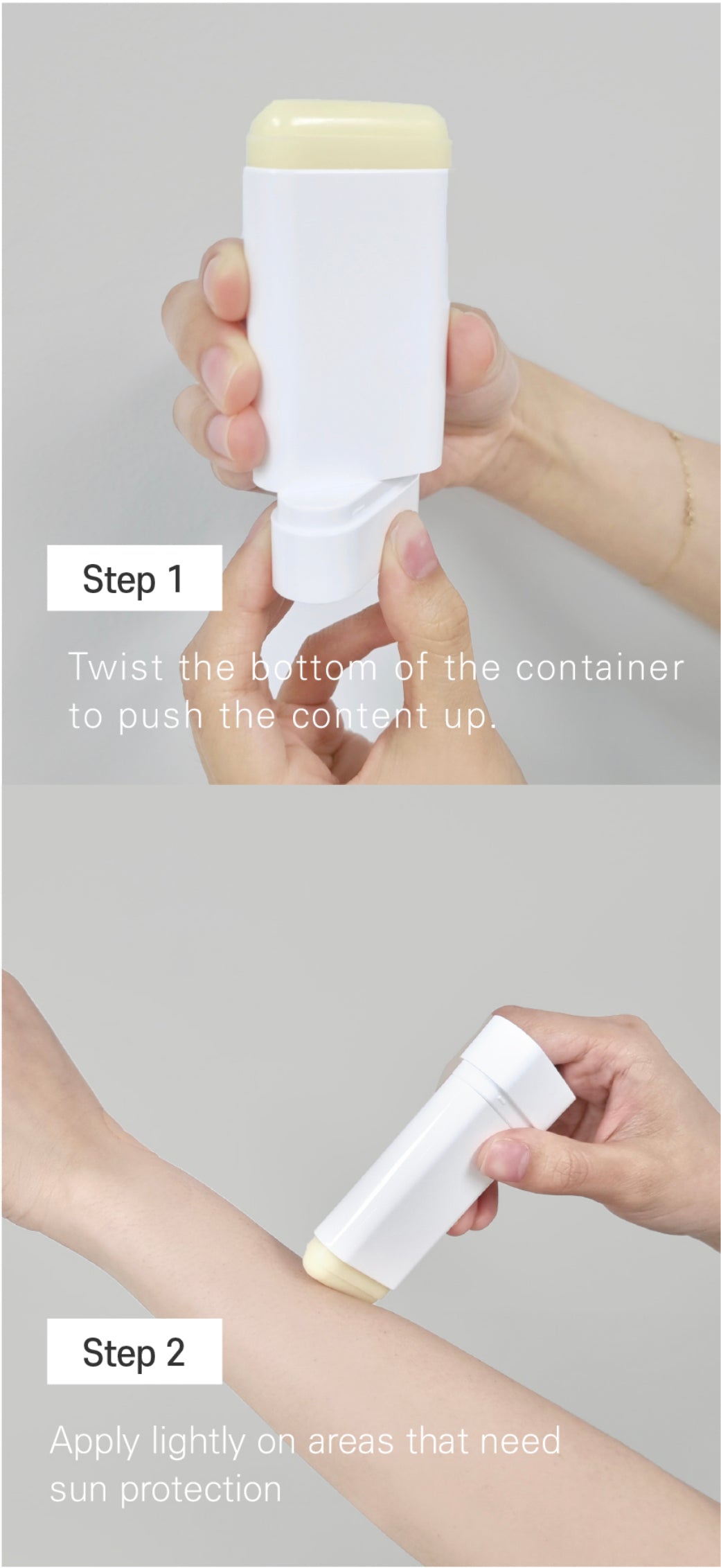 At the final step of your skincare routine, turn the dial on the bottom of the container to release 5mm of the stick, then lightly apply working from the inner face outwards. Carry around and reapply whenever or wherever needed.